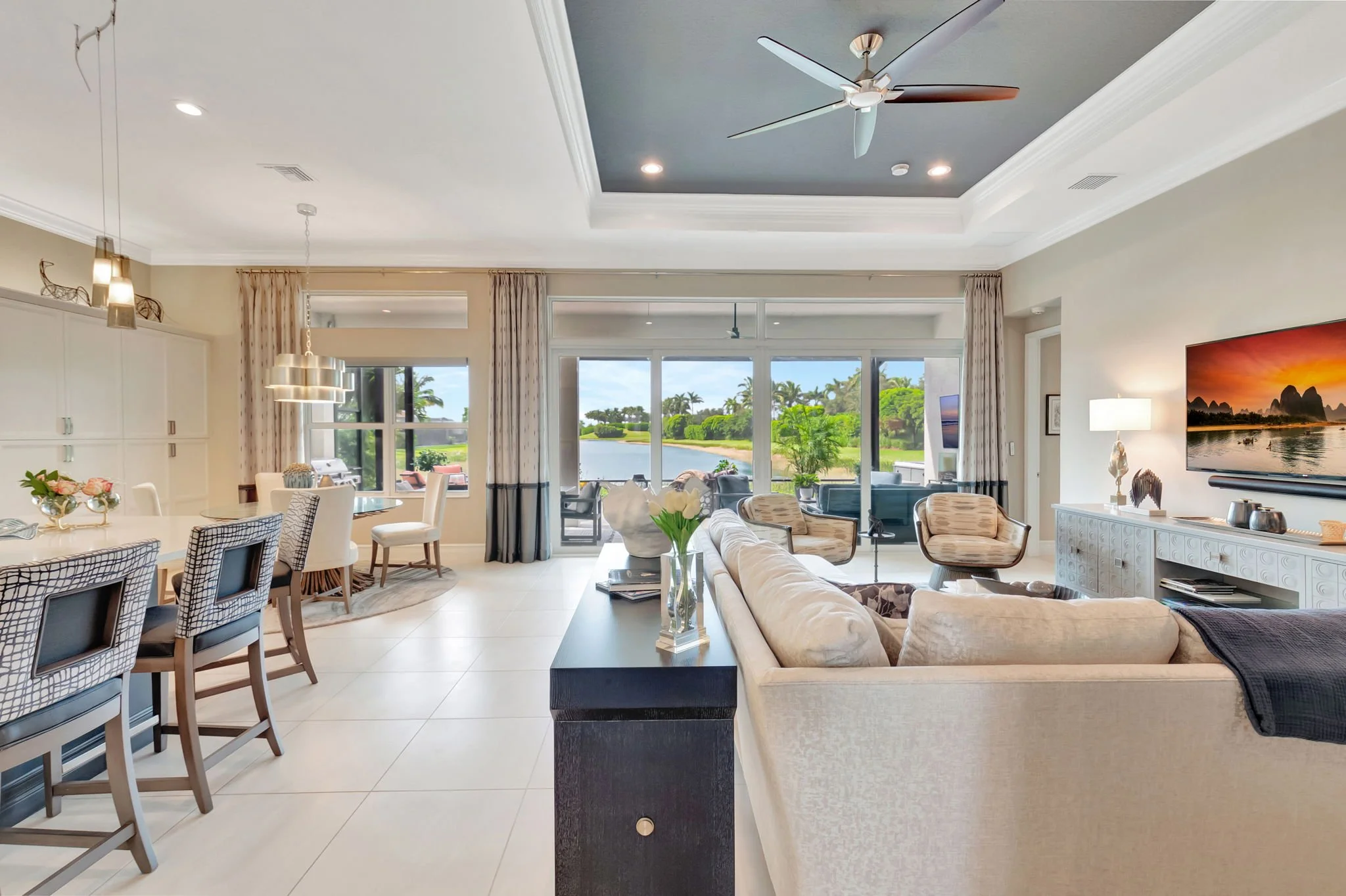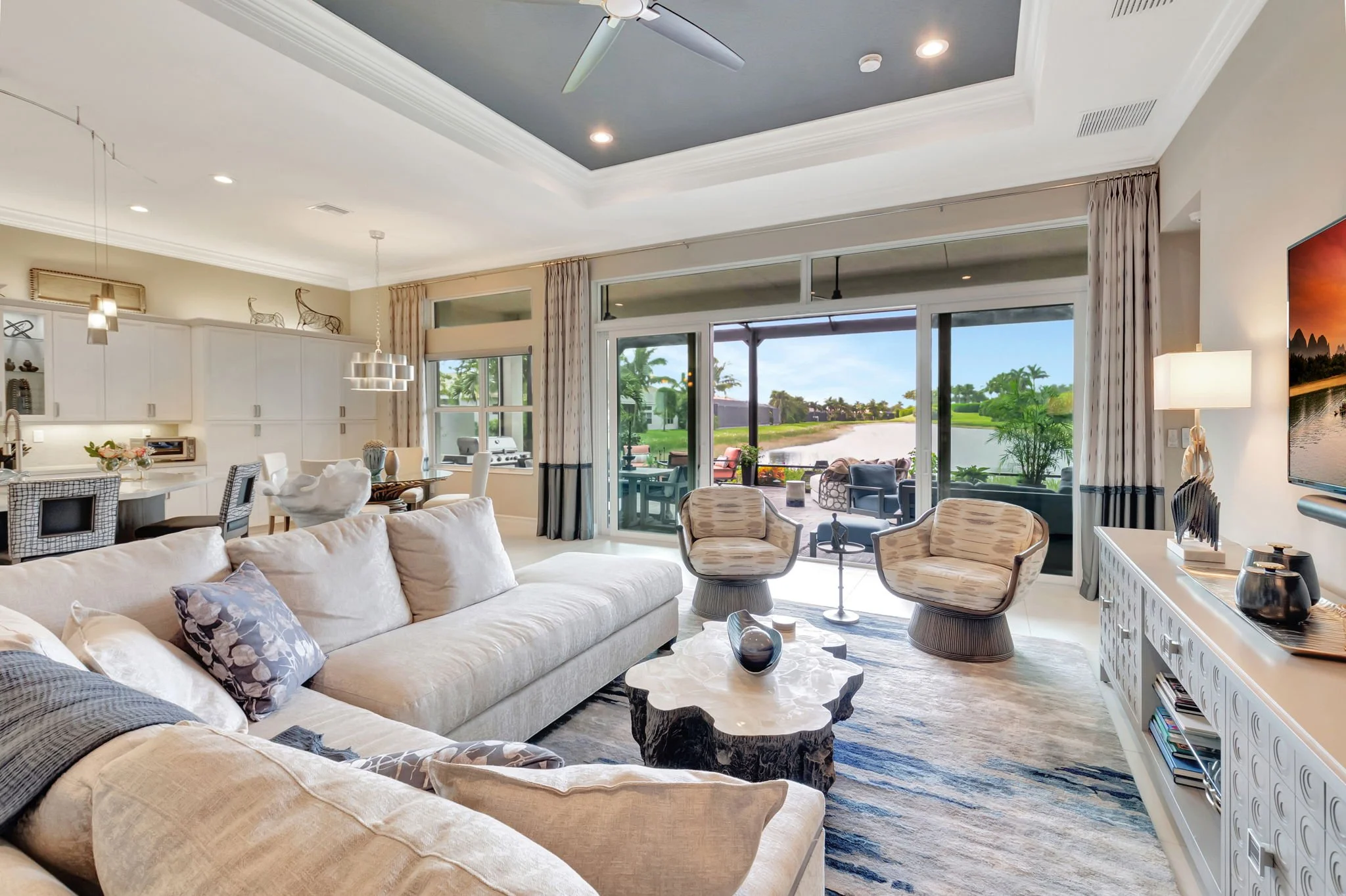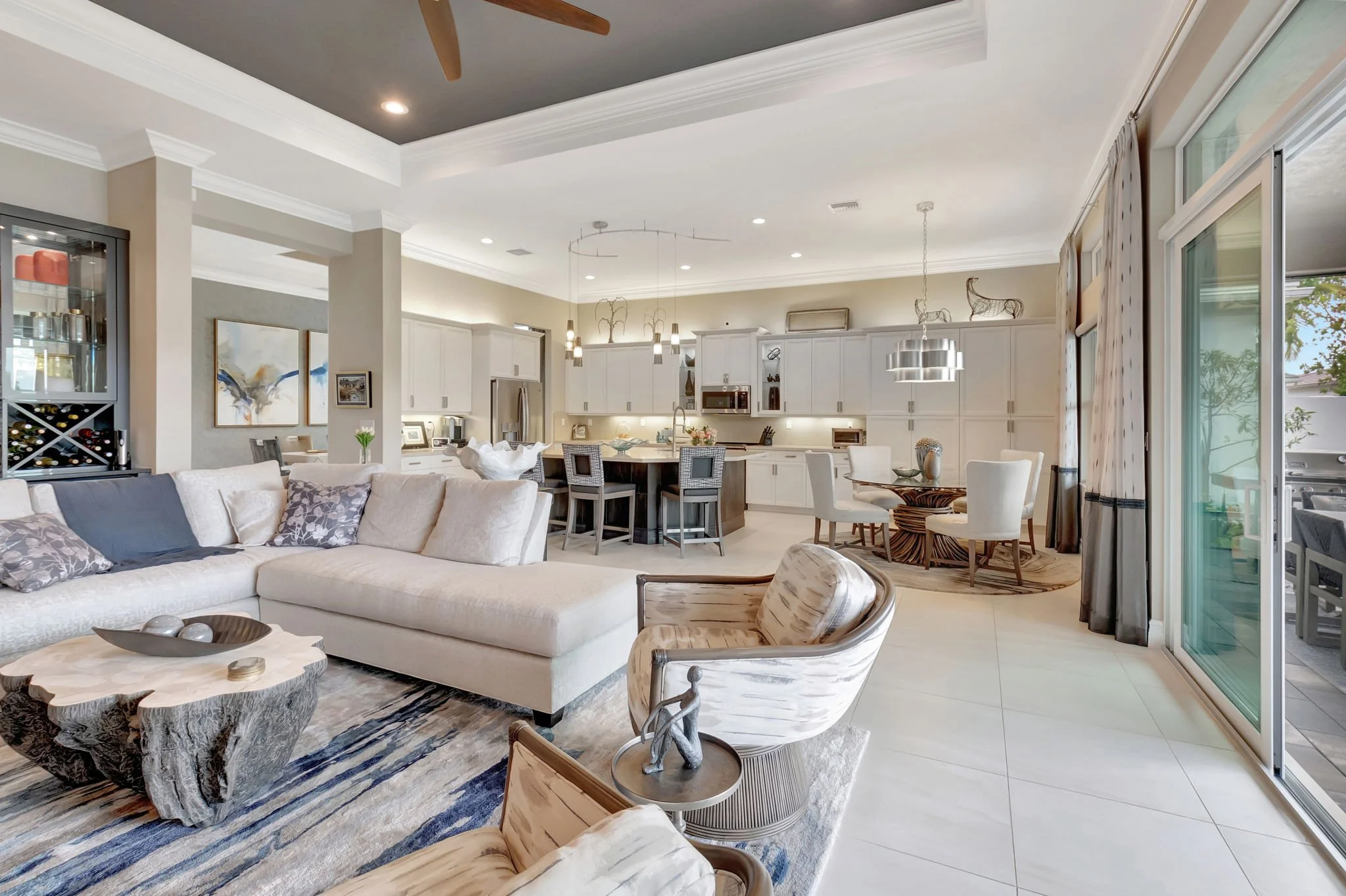 Our client envisioned casual elegance that felt warm and inviting—and we elevated it to the next level. The standout features of this renovation are the custom bar cabinet and bifold doors, which truly set this home apart from others in the community.